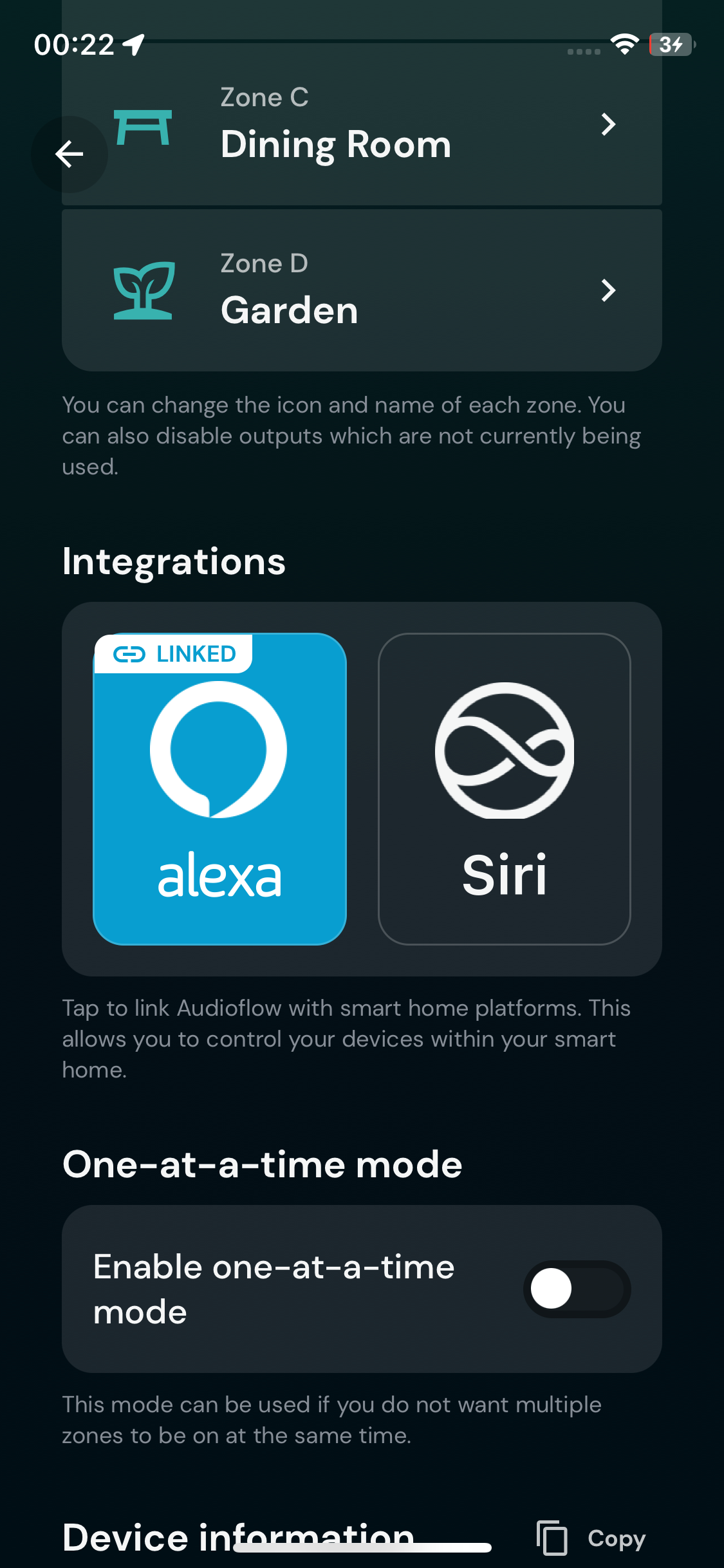 Use the phrase “Alexa, discover devices” for Alexa to pick up the new Audioflow zones and their names. You should be able to control your Audioflow by saying "Alexa, turn on / off [zone name]".