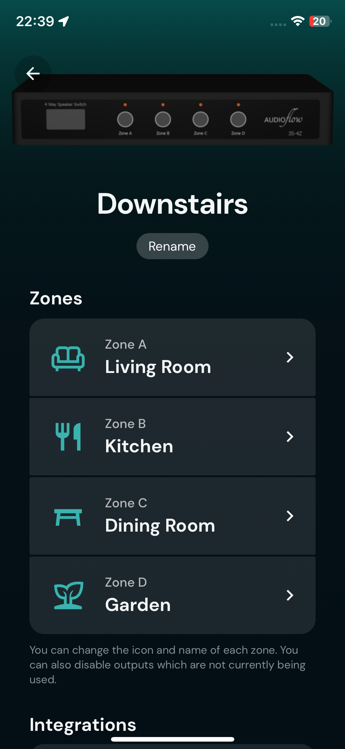 Amazon Alexa will pick up the zone names which you have set in the Audioflow App, so please make sure you have these correct.