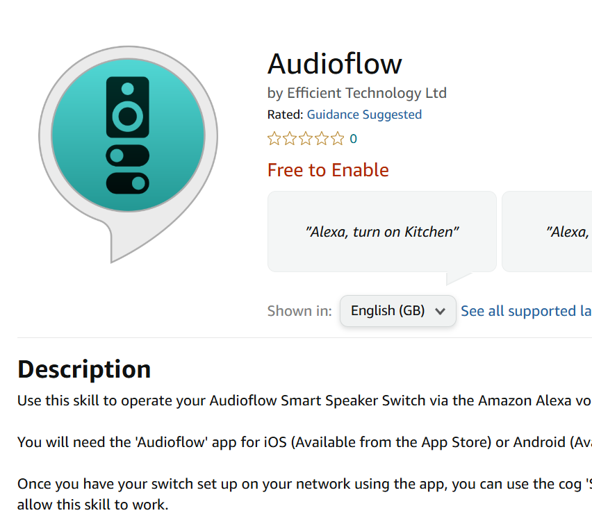NOTE: The Amazon Alexa Audioflow Skill is only available for English language Amazon Locales (EU / UK / IE / US / CA) at the moment.