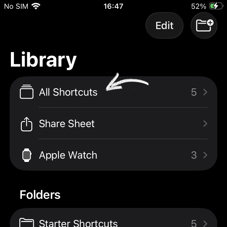 You can organise your Shortcuts in iOS and save these into folders. Of course you are welcome to do that now, but a quick way to get started is just to click on All Shortcuts.