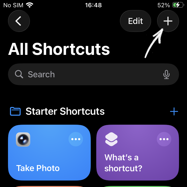 Click the + button in the top right to add a new Shortcut.