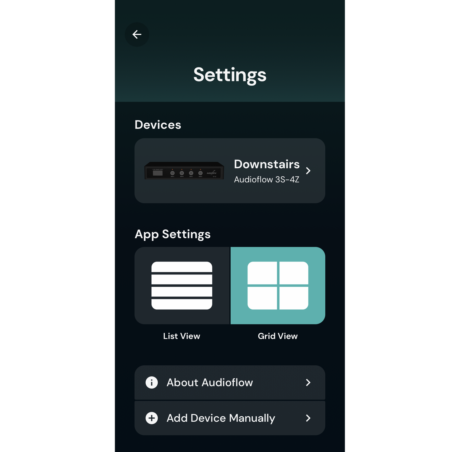 Add Device Manually - This is a troubleshooting option you can try just in case your Audioflow Status shows that it is Connected to your Wi-Fi but your app cannot automatically find it.